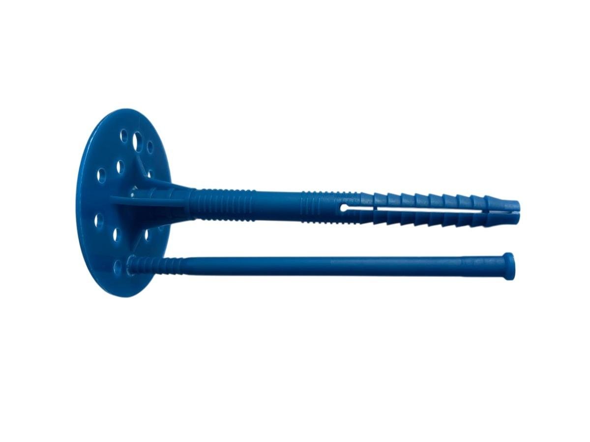 Используется для крепления теплоизоляционных материалов к бетону, полнотелому и пустотелому кирпичу, камню, пенобетону. Состоит из дюбеля с двухсегментной распорной частью, имеющего увеличенную прижимную шайбу диаметром 60мм и гвоздя. Установка производится методом сквозного монтажа, крепление в стене производится забиванием пластикового гвоздя. Различная длина дюбелей позволяет крепить теплоизоляционные материалы различной толщины.